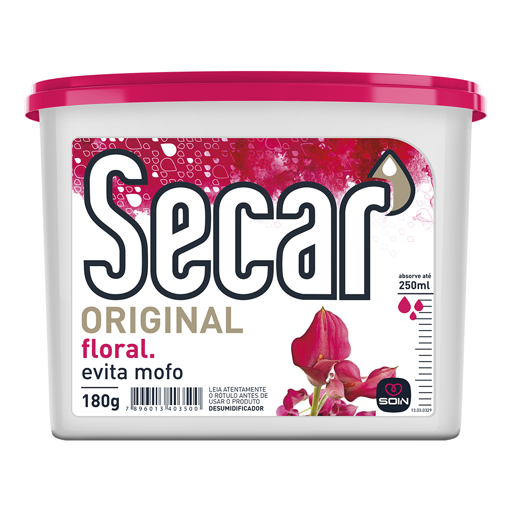 INSTRUÇÕES DE USO:1. Limpe bem o local onde houver mofo antes de colocar o Secar.2. Remova a tampa do Secar e retire o lacre de alumínio, tomando cuidado para não remover ou danificar o filtro branco que se encontra abaixo dele. Tampe e coloque no local.3. No caso de armário com vários módulos, colocar um Secar em cada módulo.4. O Secar inicia sua ação de imediato e age por um período entre 1 a 3 meses variando de acordo com a quantidade de umidade encontrada no ambiente.5. Quando o nível de água atingir o limite máximo do indicador na lateral do rótulo, está na hora de substituir o Secar.