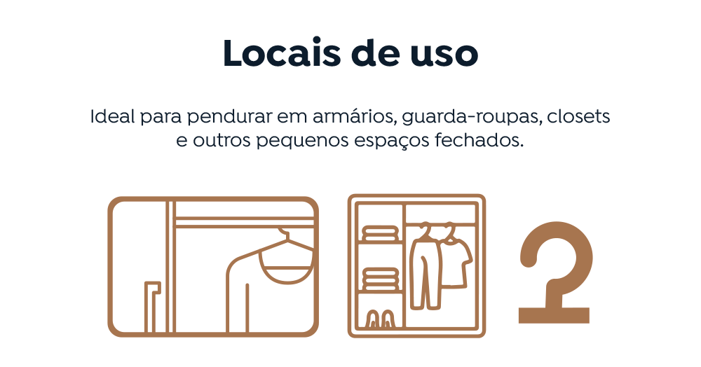 Secar Closet é um evita mofo com fragrância suave e agradável, que vem acompanhado de cabide para ser pendurado em armários, guarda-roupas e closets. Ele elimina o excesso de umidade do ambiente, prevenindo mofo, fungos e odores indesejados. Sua fórmula atua absorvendo a umidade do ar e armazenando a água em sua bolsa coletora. Com capacidade de até 350 ml, oferece proteção por até 30 dias, dependendo da temperatura e umidade do ambiente.
