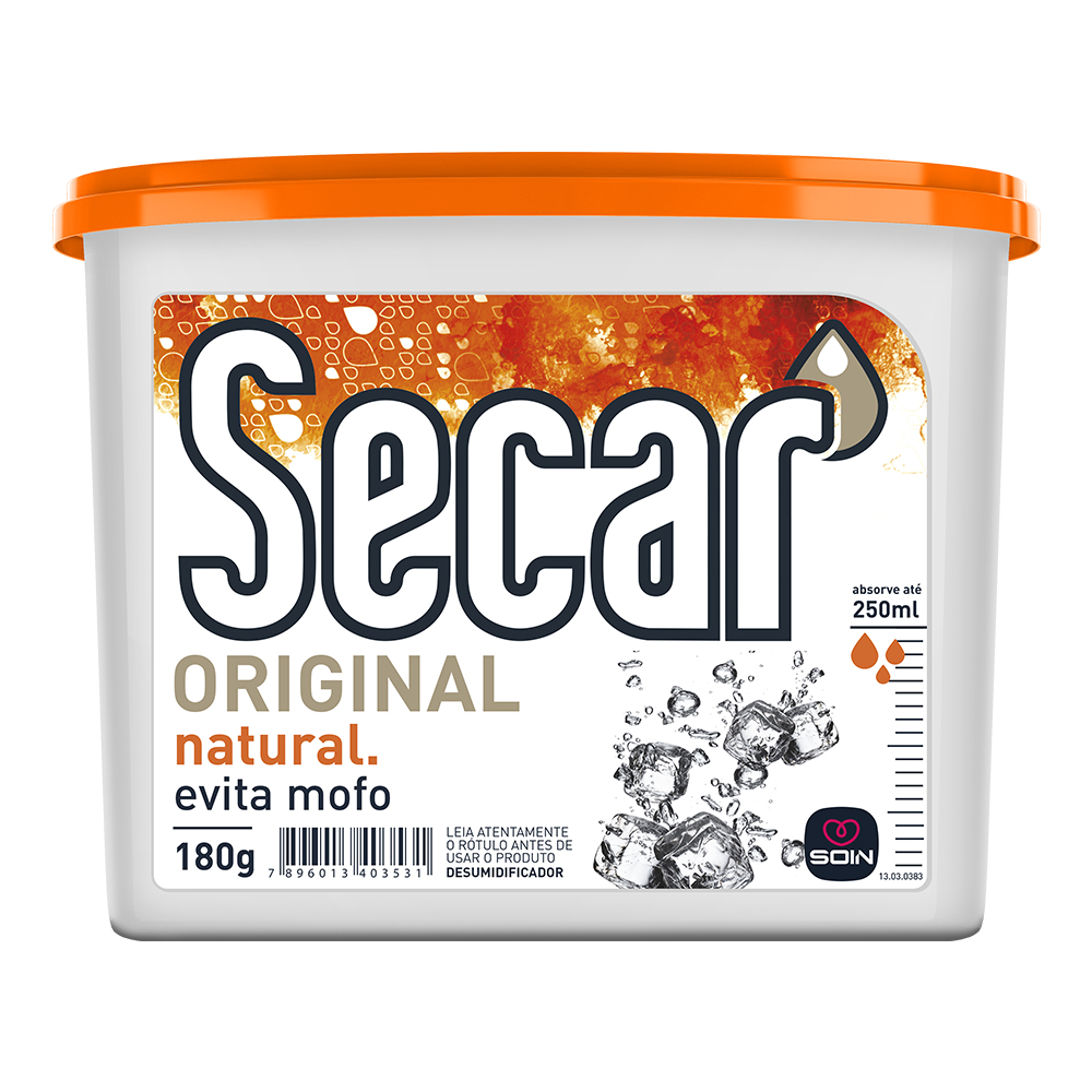 INSTRUÇÕES DE USO:1. Limpe bem o local onde houver mofo antes de colocar o Secar.2. Remova a tampa do Secar e retire o lacre de alumínio, tomando cuidado para não remover ou danificar o filtro branco que se encontra abaixo dele. Tampe e coloque no local.3. No caso de armário com vários módulos, colocar um Secar em cada módulo.4. O Secar inicia sua ação de imediato e age por um período entre 1 a 3 meses variando de acordo com a quantidade de umidade encontrada no ambiente.5. Quando o nível de água atingir o limite máximo do indicador na lateral do rótulo, está na hora de substituir o Secar.